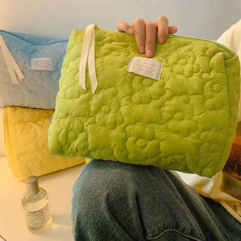 Carry your beauty essentials in style with this floral portable cosmetic bag. Designed with a soft fabric and elegant flower pattern for a feminine touch. Large capacity allows easy storage of makeup, brushes, and skincare items. Perfect for travel, daily use, or cosmetic display. Durable zipper closure keeps your items secure and organized. Lightweight and compact for effortless portability. Ideal for both professional and personal use. Easy to clean and maintain for long-lasting freshness. Can also be used as a toiletry or wash bag. Stay organized and stylish wherever you go with this charming makeup organizer.